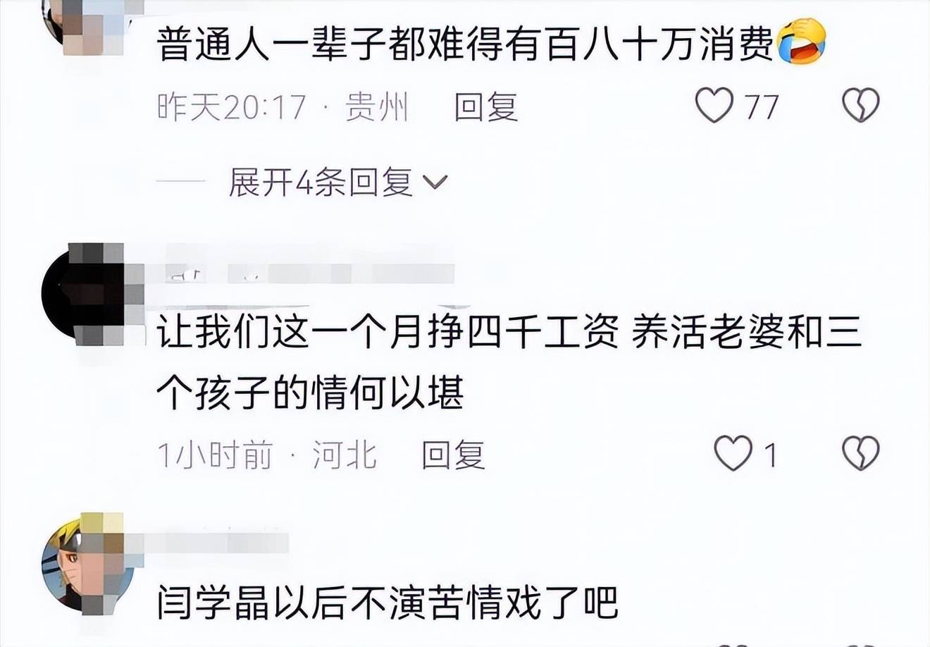 后续离谱的操做来了,这个家底子转不动”,面临网友铺天盖地的,反手就把社交账号的评论关了,53岁演员闫学晶比来正在曲播里说儿子正在“一年拍一部挣几十万不敷花”,她间接说不注释,“没有百八十万,就他们本人当做没有这回事,何庆魁儿子正在评论区点名闫学晶,你永久正在这个舞台上会好使”