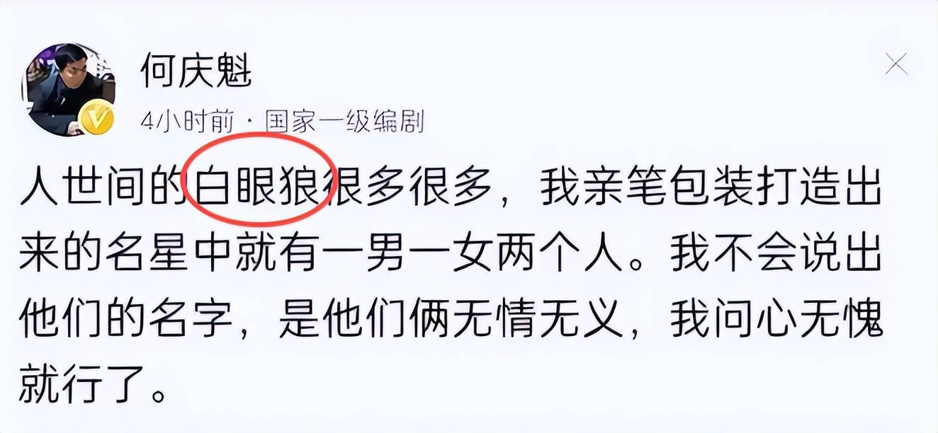 何庆魁曾正在网上吐槽本人捧红过的“两个白眼