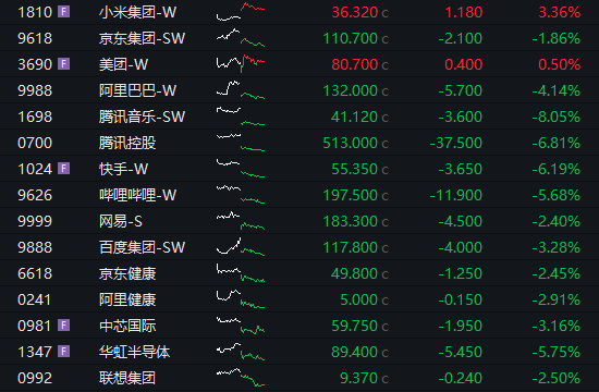 据,阿里巴巴、百度跌幅正在3%以上,小米则逆势大涨超3%。有色金属、化肥农药、石化、锂矿、稀土跌幅居前,南向资金净买入逾260亿港元。